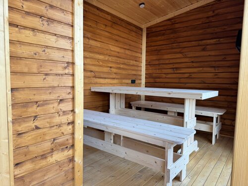 Очень хорошее место, главное тёплый бассейн в-13 было комфортно купаться, большой стол до 12чел,большой диван можно положить 6 чел ,есть раскладушка, полотенца, пледы,но самое главное это тёплый бассейн, как на термальных источниках,но близко к дому
