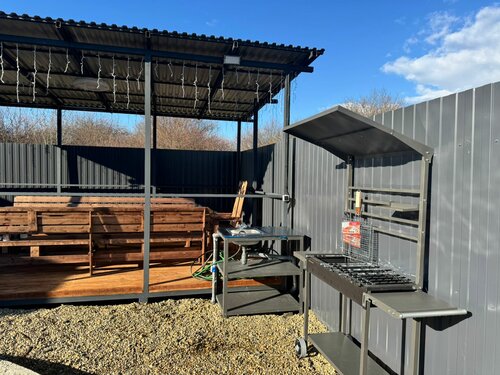 Музыкальная люстра в беседке на улице, беседка рассчитана на 15 человек (теплое время года, беседка не отапливается) Мангал с решетками и шампурами,