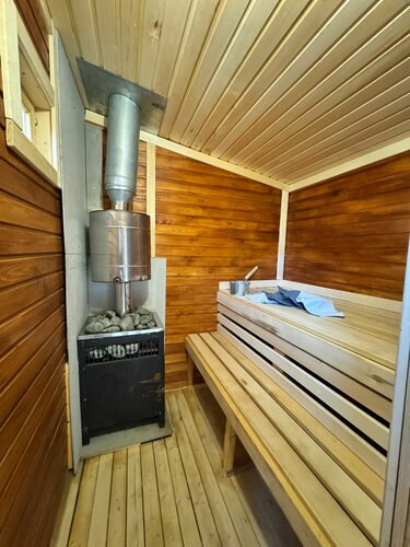 Хорошая банька, быстрая топка, удобно по необходимости на месте закупить необходимое количество дров